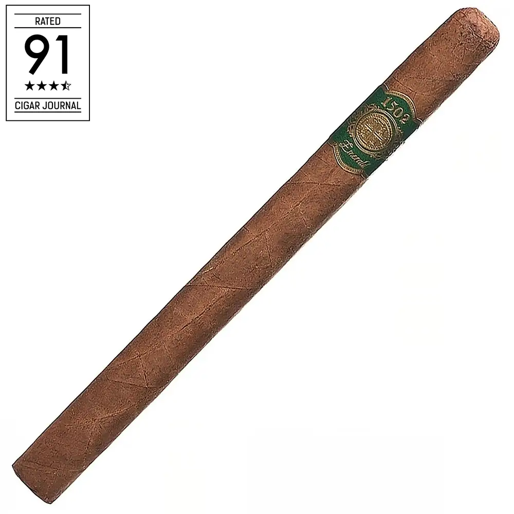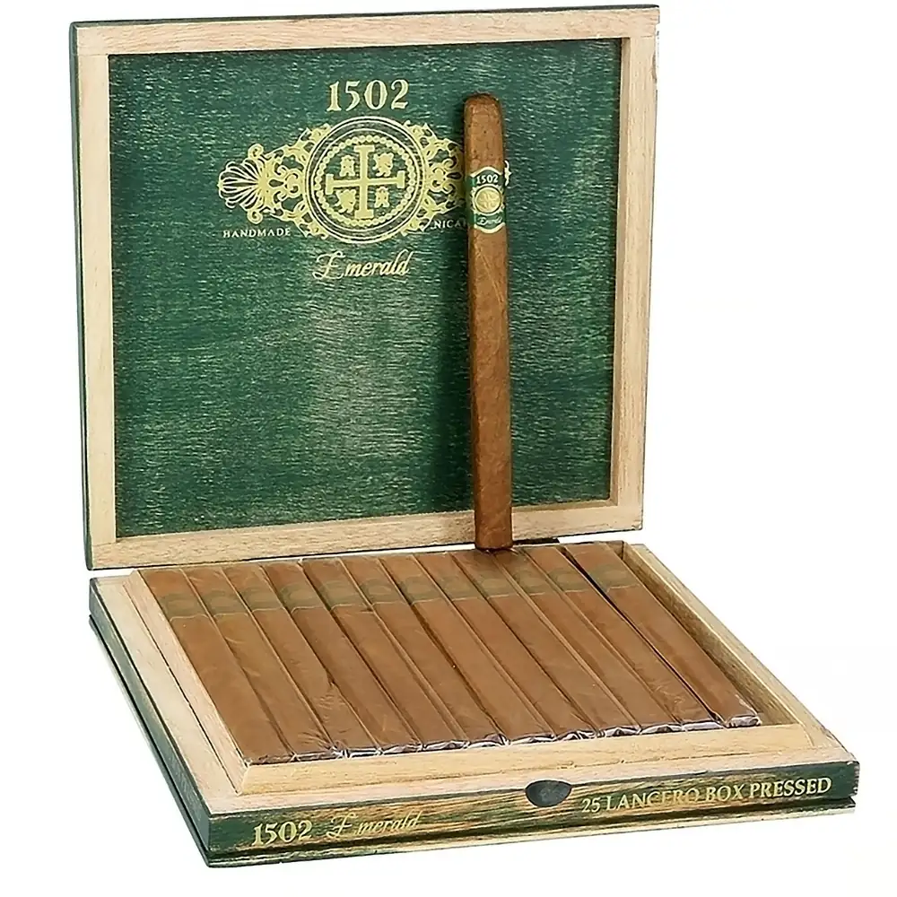 The 1502 Emerald Lancero was crafted using carefully selected aged tobacco leaves to give it its smooth, unique flavor profile. It is a mild-bodied, box-pressed stick that features a savory light-tan Nicaraguan Corojo Habano-seed wrapper placed over a Nicaraguan binder and long-filler leaves from Mexico and Nicaragua. This specially curated blend offers a palate pleasing sweetness with fruity notes and a relaxing vanilla aroma.