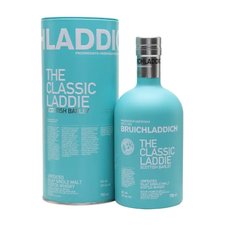 Signature bottling and the definitive Bruichladdich. Showcasing the classic, floral and elegant Bruichladdich house style, The Classic Laddie is made from 100% Scottish barley, trickle distilled, non-chill filtered and colouring free.