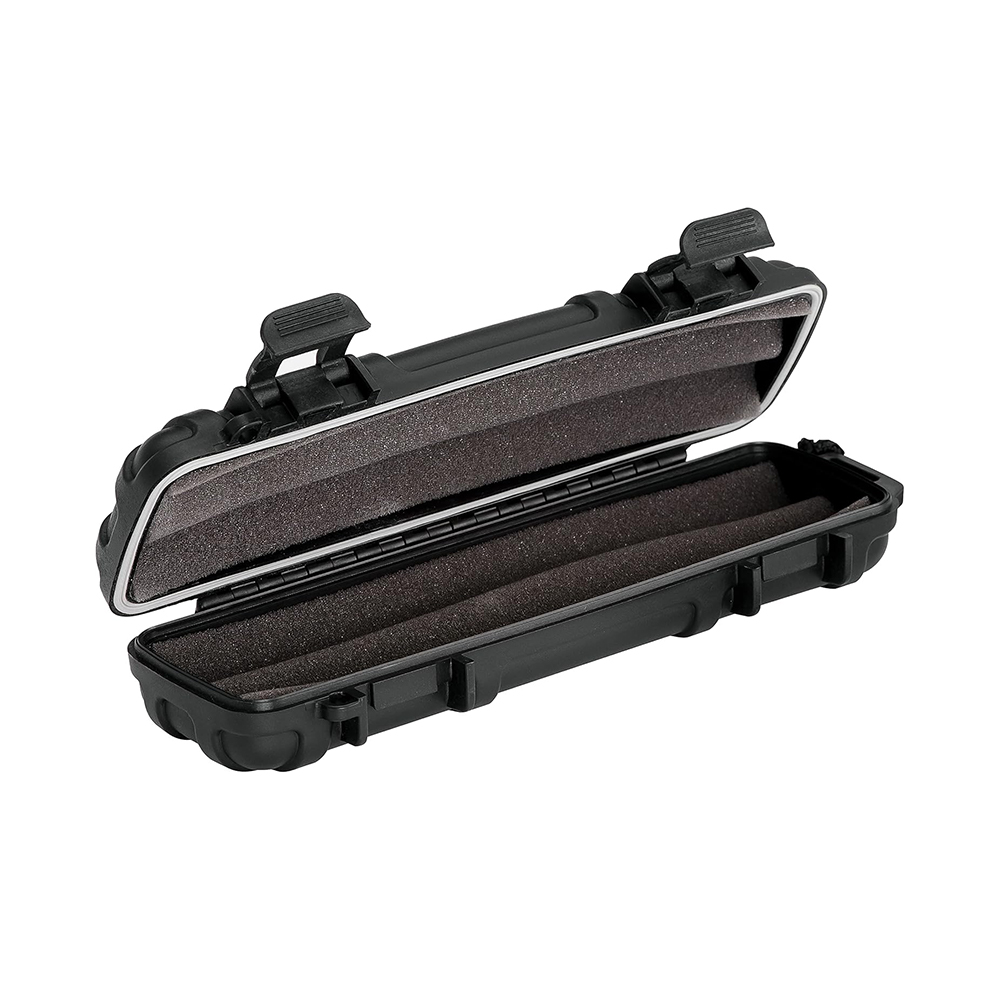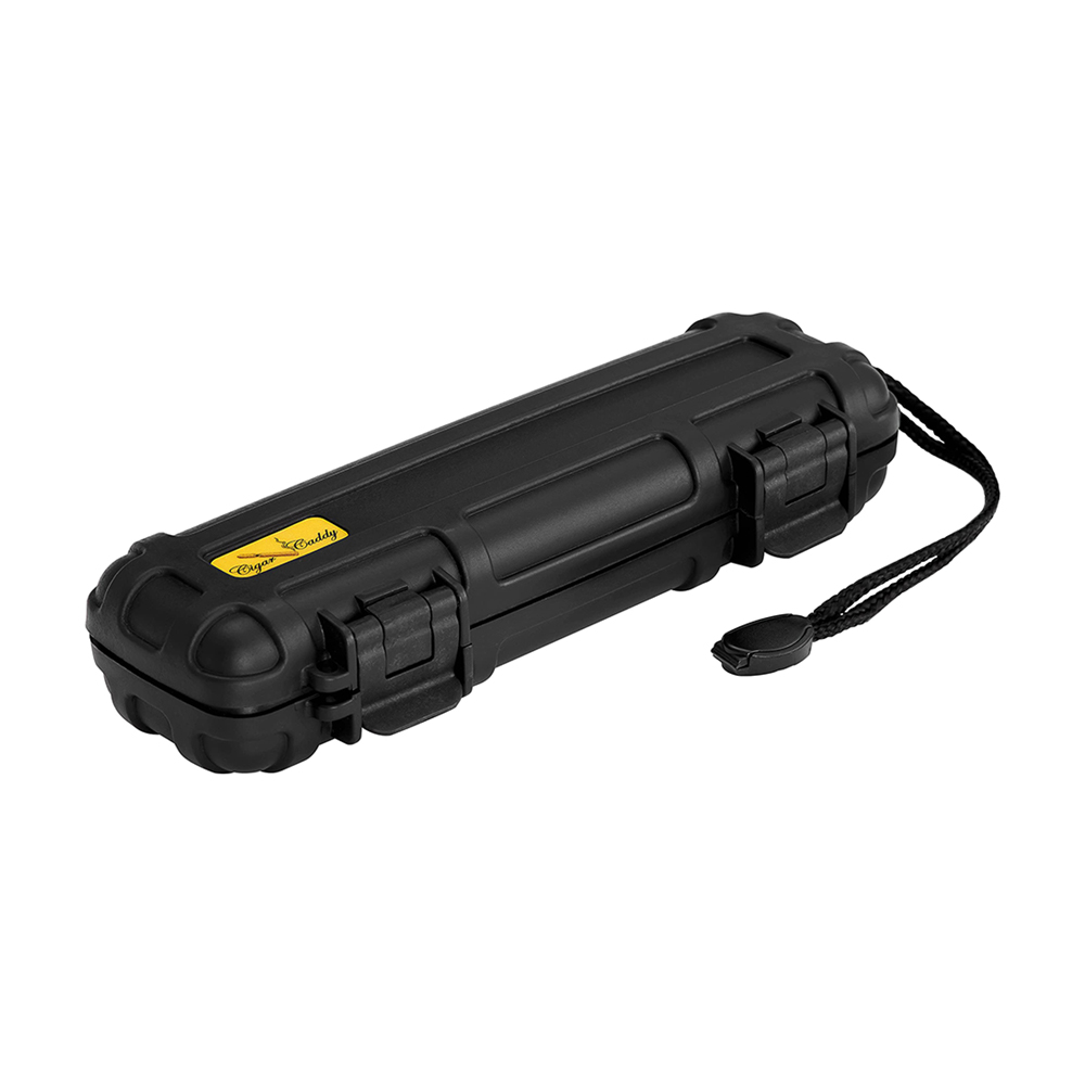 This is the ideal travel humidor for outdoorsmen. It is crushproof, waterproof, and can withstand a temperature range of -23 to 80 celzijus. It features an airtight seal, stainless steel latch hinges and a lanyard clip for easy transportation. Holds 2 cigars.