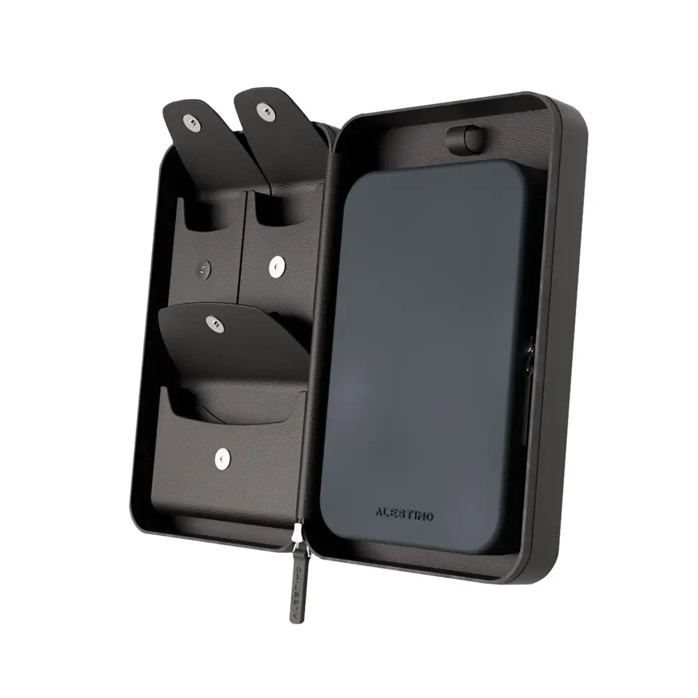 Alestimo torbica za cigare je vrhunski prijenosni organizator dizajniran za ljubitelje cigara. Ima magnetski uklonjiv, vodootporni TPU pretinac za 6 cigara, čuvajući ih zaštićenima i svježima. Torba uključuje namjenske prostore za upaljač, rezač i ostali pribor.