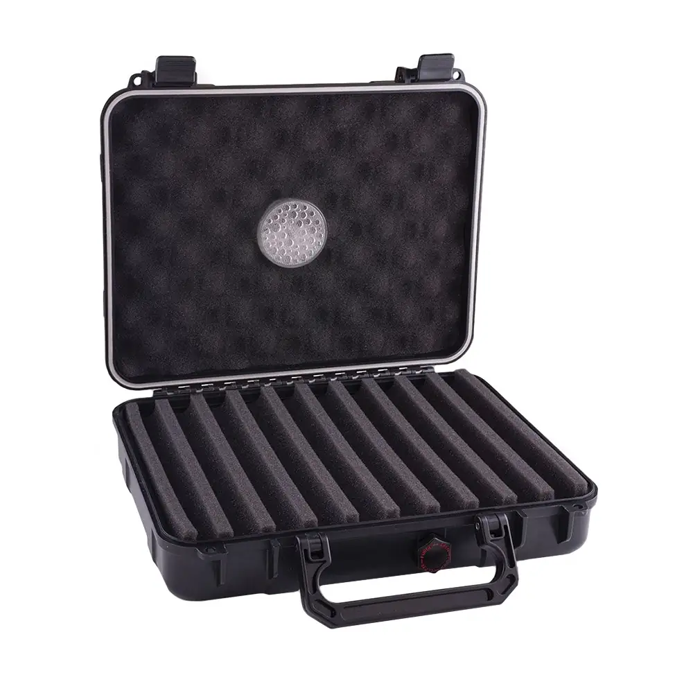 Plastični putni humidor kapaciteta 20 cigara, hermetički zatvoren, vodootporan i otporan na udarce.