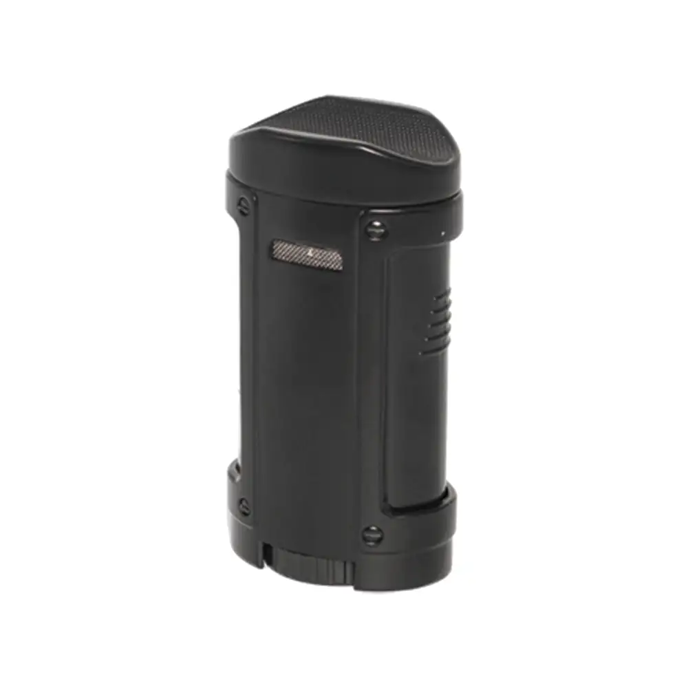 Eurojet upaljač s četiri mlaznice plamena, otporan na vjetar. Četiri ekstra jaka plamena za lako i ravnomjerno paljenje cigare. Ima potpuno metalno tijelo u crnoj reljefnoj glatkoj boji. Gornja strana služi kao držač za vašu cigaru.